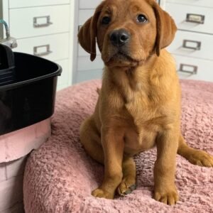 Hi, I’m Dax! I’m a 4-week-old male Labrador Retriever with a beautiful english chocolate coat, born on November 01, which makes me a Scorpio sign. I’ll be ready to go home to my forever family after January 01, once I’m grown enough to leave my litter. When I reach my adult size, I should weigh between 60–95 lbs. I’m AKC registered. I love to run and roll around outside. But, my favorite thing to do after a long day at play is to snuggle up on the couch next to my family and sleep as they pet my head.
